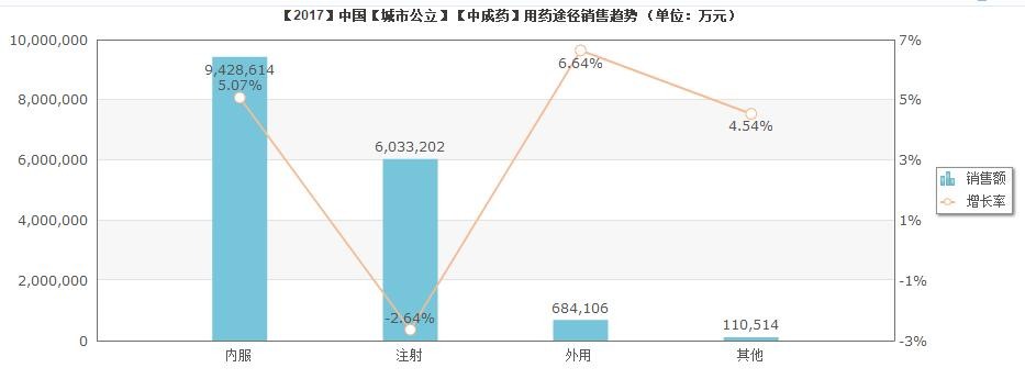 圖10 2017年,國(guó)內(nèi)城市公立醫(yī)療機(jī)構(gòu)中成藥需求結(jié)構(gòu)(據(jù)米內(nèi)網(wǎng)數(shù)據(jù)整理)