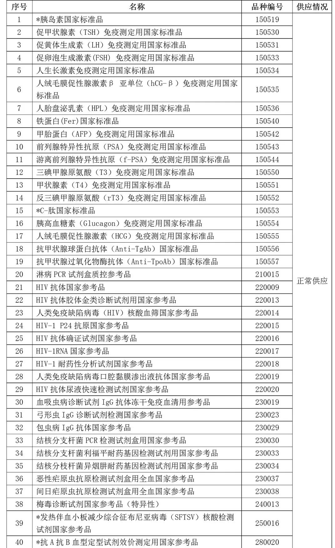1. *標(biāo)識(shí)品種為本期目錄新增體外診斷試劑標(biāo)準(zhǔn)物質(zhì)。