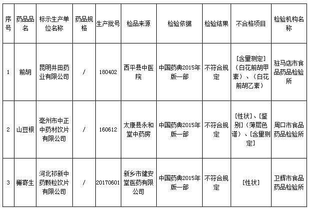 河南省藥監(jiān)局:3批次藥品抽檢不合格
