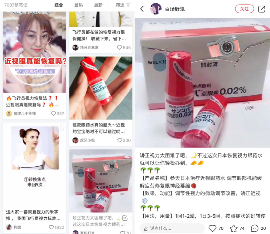 在小紅書平臺(tái),亦有部分分享者聲稱使用“日本參天調(diào)解眼機(jī)能眼藥水”可以恢復(fù)視力。