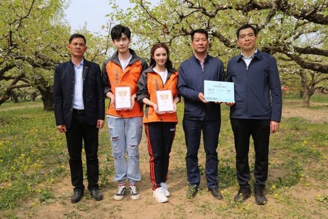 演員陳星旭、彭小苒與碭山縣副縣長朱明春(右一)、副縣長薛勇(右二)在碭山梨園