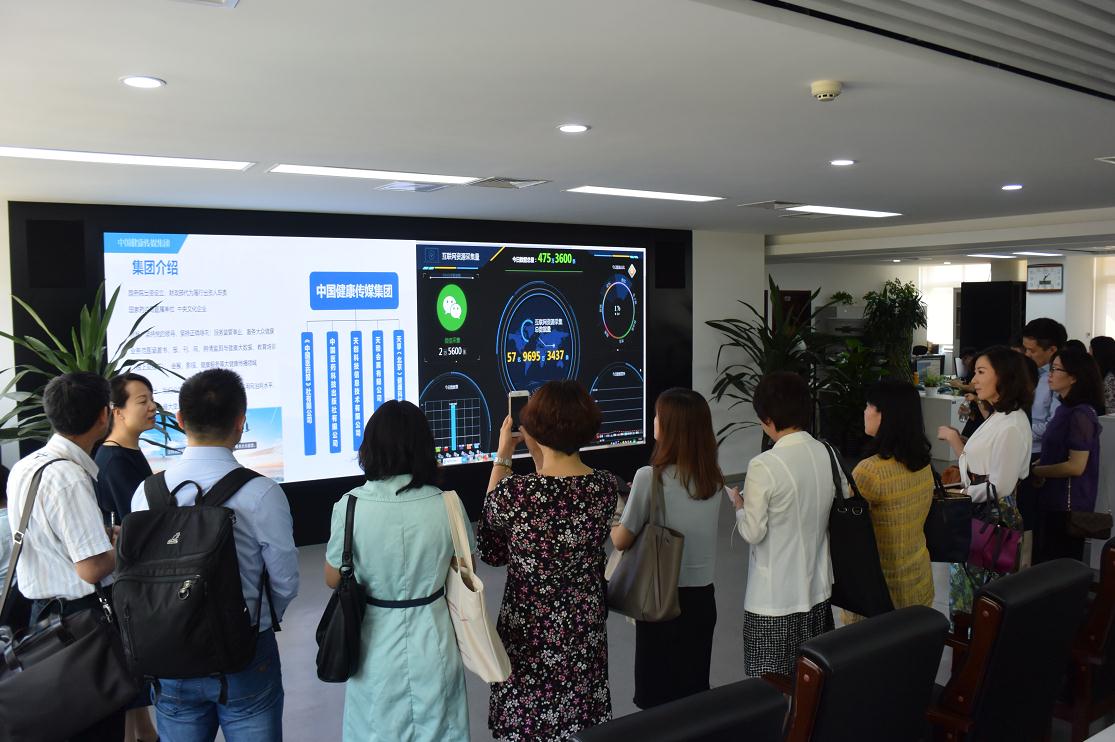 化妝品企業(yè)和協(xié)會(huì)代表參觀中國(guó)健康傳媒集團(tuán)利用大數(shù)據(jù)技術(shù)開(kāi)發(fā)的食品藥品輿情監(jiān)測(cè)系統(tǒng)和中國(guó)化妝品風(fēng)險(xiǎn)預(yù)警平臺(tái)。