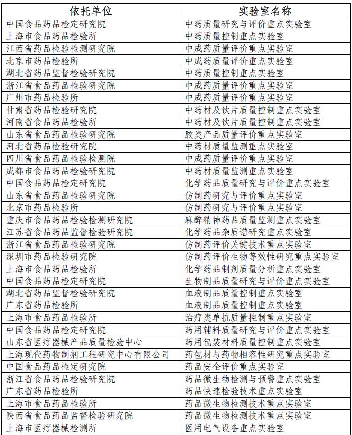 國(guó)家藥品監(jiān)督管理局首批重點(diǎn)實(shí)驗(yàn)室公示名單