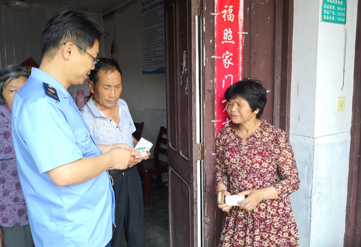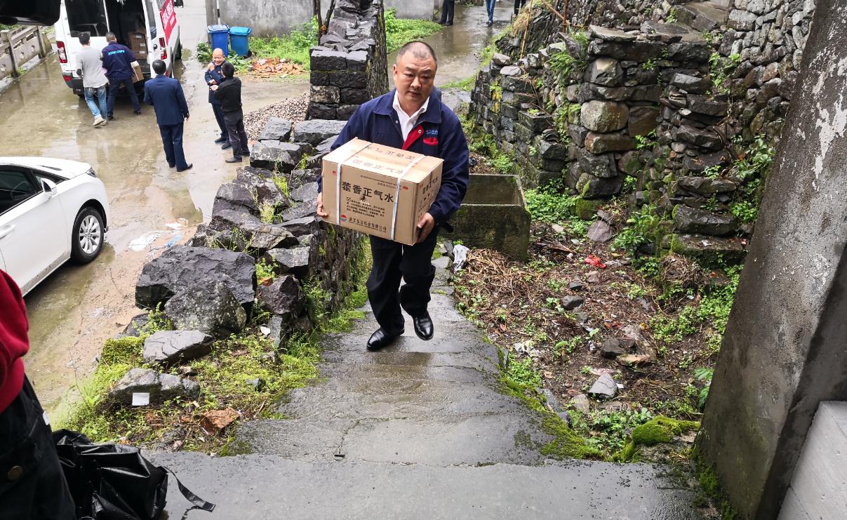 圖為仙居九州通醫(yī)藥有限公司為安嶺鄉(xiāng)永源村服務(wù)點配送藥品。(照片由臺州市市場監(jiān)管局提供。)