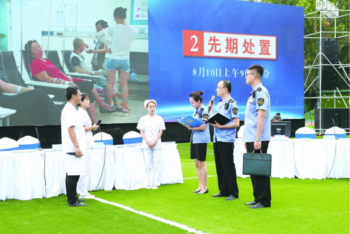 此次演練模擬西安市蓮湖區(qū)健康醫(yī)院6名患者輸液后出現(xiàn)抽搐、發(fā)熱等癥狀現(xiàn)場,通過實戰(zhàn)情景視頻播放和現(xiàn)場演練相結(jié)合的方式,反映食藥監(jiān)管部門面對藥械安全突發(fā)事件應(yīng)急處置全過程。