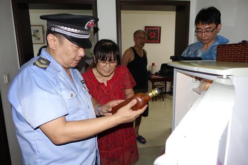 呼家樓街道食藥監(jiān)所的監(jiān)管人員還走進居民魏大媽等人家里,幫助她們清理冰箱、藥箱。